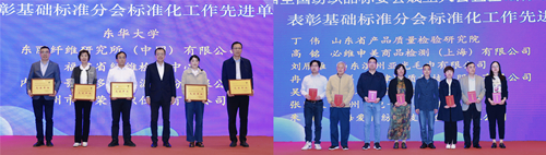 會議表彰了2022年度基礎標準分會標準化工作先進單位和個人,同時為第五屆全國紡織品標委會委員和觀察員、基礎標準分會增補觀察員頒發證書。