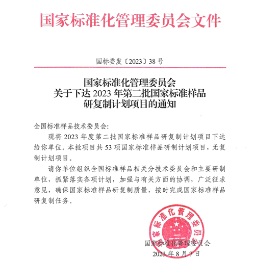 2023年8月7日,國家標準化管理委員會印發《關于下達2023年第二批國家標準樣品研復制計劃項目的通知》(國標委發[2023]38號),下達2023年度第二批國家標準樣品研復制計劃項目共53項,正式立項的6項紡織標準樣品計劃均由通用技術中紡院中紡標檢驗認證股份有限公司(以下簡稱“中紡標”)承擔研制