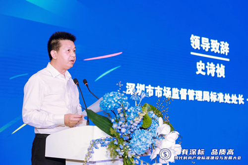 深圳市市場(chǎng)監(jiān)督管理局標(biāo)準(zhǔn)處處長(zhǎng)、一級(jí)調(diào)研員史詩(shī)禎出席并致辭。他表示要堅(jiān)持以標(biāo)準(zhǔn)為引領(lǐng)構(gòu)建科學(xué)先進(jìn)的標(biāo)準(zhǔn)體系,以標(biāo)準(zhǔn)化手段開(kāi)展知識(shí)產(chǎn)權(quán)保護(hù),充分發(fā)揮標(biāo)準(zhǔn)對(duì)推動(dòng)技術(shù)進(jìn)步,服務(wù)企業(yè)發(fā)展,引領(lǐng)產(chǎn)業(yè)升級(jí)的先導(dǎo)性作用。