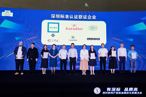 經(jīng)過(guò)多年的發(fā)展,深圳已發(fā)展成為國(guó)內(nèi)行業(yè)門(mén)類最齊全、原創(chuàng)品牌最集中、產(chǎn)業(yè)配套最完善、規(guī)模集聚效應(yīng)最顯著的時(shí)尚產(chǎn)業(yè)基地之一,服裝時(shí)尚產(chǎn)業(yè)在全國(guó)處于引領(lǐng)地位,更是被譽(yù)為“中國(guó)女裝之都”。深圳標(biāo)準(zhǔn)定位于“國(guó)內(nèi)領(lǐng)先,國(guó)際一流”的評(píng)價(jià)體系,以先進(jìn)標(biāo)準(zhǔn)、卓越品質(zhì)為評(píng)價(jià)維度驗(yàn)證產(chǎn)品性能和服務(wù)體驗(yàn),突顯產(chǎn)品和服務(wù)的競(jìng)爭(zhēng)優(yōu)勢(shì);以城市品牌的形象,為市場(chǎng)推介優(yōu)秀的產(chǎn)品和優(yōu)質(zhì)的服務(wù),向社會(huì)傳遞高標(biāo)準(zhǔn)引領(lǐng)、高質(zhì)量發(fā)展的理念。本次有多家服裝企業(yè)產(chǎn)品獲得深圳標(biāo)準(zhǔn)認(rèn)證證書(shū),與會(huì)領(lǐng)導(dǎo)共同為獲證企業(yè)頒發(fā)了深圳標(biāo)準(zhǔn)認(rèn)證證書(shū)。