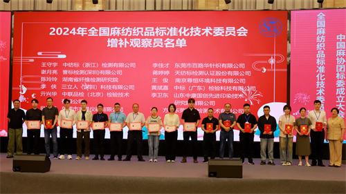 會議表彰了2023年度全國麻紡織品標準化技術委員會標準化工作的先進單位和個人,同時為新增補的觀察員頒發(fā)了證書。