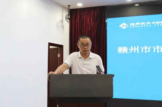 贛州市監(jiān)局四級調(diào)研員廖蔚、工信局四級調(diào)研員劉宇勝,中紡標總經(jīng)理李斌,江西中紡標副總經(jīng)理袁俊,于都縣紡織服裝產(chǎn)業(yè)發(fā)展中心及于都縣、寧都縣、石城縣、興國縣、瑞金市工信局等相關領導與近80家贛州紡織服裝企業(yè)代表出席會議。