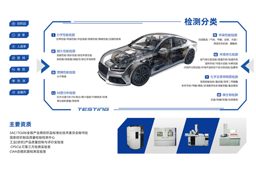 浙江中紡標(biāo)憑借卓越實(shí)力獲得上汽大眾材料實(shí)驗(yàn)室認(rèn)可證書,可對(duì)汽車內(nèi)飾材料力學(xué)性能、耐久性能、材質(zhì)分析、環(huán)境老化、化學(xué)及禁用物質(zhì)、車內(nèi)空氣質(zhì)量、微生物等80余項(xiàng)實(shí)驗(yàn)進(jìn)行檢測(cè),全面覆蓋汽車材料多維度檢測(cè)需求。