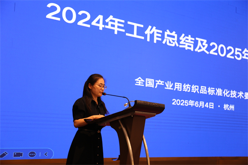 中紡標秘書處主任、全國產業用紡織品標準化技術委員會秘書長劉飛飛從優化完善標準體系、標準制修訂工作、國際標準化工作、相關項目榮獲科技進步獎及經費情況等方面對2024年標委會工作作了總結報告,并從推動組建成立全國產業用紡織品標委會非織造材料分技術委員會和過濾分離用紡織材料分技術委員會、做好標準制修訂項目的立項申報工作、提高國際標準轉化率、按期完成標準制修訂任務、及時做好標委會歸口標準的復審工作、加強標準宣貫推動標準有效實施、加強標委會自身建設等方面介紹了2025年的工作計劃。